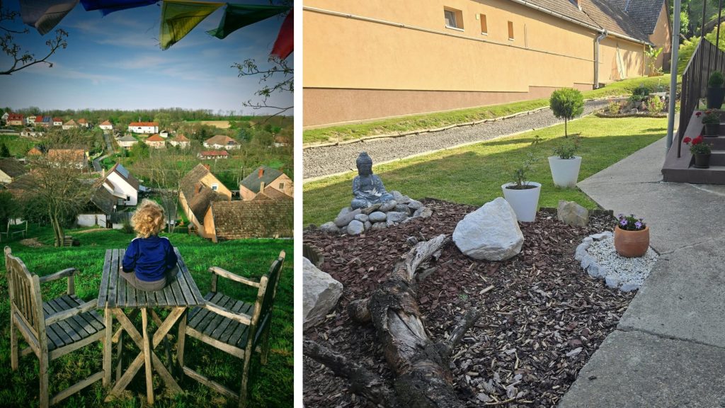 A ház és az udvar átalakítása során szigorúan figyelembe kellett venniük a költségeket, így sok anyagot újra felhasználtak, ezzel nemcsak a költségeken spóroltak, hanem a környezettudatos életmódot is megvalósították. András elmondása szerint a buddhizmus iránti vonzalma nagyban befolyásolta azt, ahogyan a teret kialakították, és az ízléses, mégis fenntartható megoldások közt egyensúlyoznak.