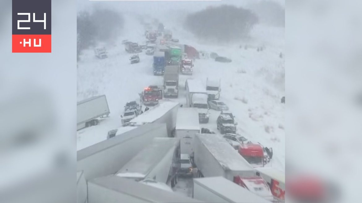 Kezdőlap Külföldi hírek Több mint száz autó ütközött a hóviharban – drónfelvétel készült a helyszínen