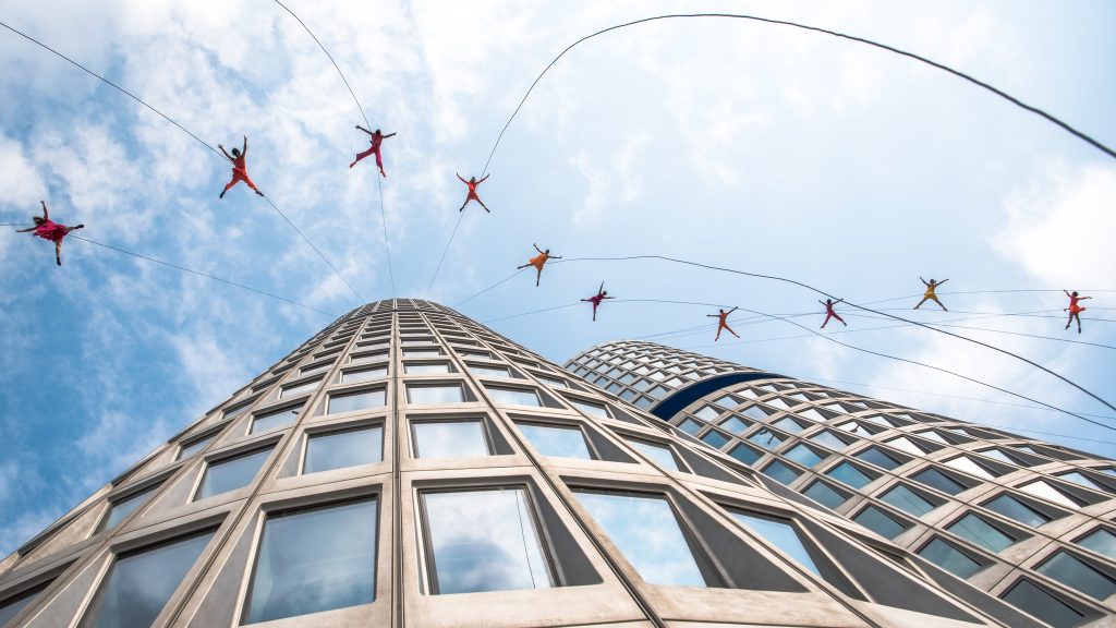 A BANDALOOP neve nem cseng ismeretlenül a kortárs művészetek kedvelői számára. A merész táncegyüttes egyedülálló módon forradalmasította a táncművészetet: koreográfiáikhoz felhőkarcolókat, történelmi épületeket, sőt sziklafalakat választanak színhelyül. A vertikális tánc műfaját az együttes alapítója, Amelia Rudolph álmodta meg, aki egy túra során döbbent rá, milyen lehetőségeket kínál a szintek közti mozgás. Azóta a BANDALOOP már több mint 22 országban varázsolta el a közönséget, beleértve Magyarországot is, ahol korábban a Müpa homlokzatán léptek fel.